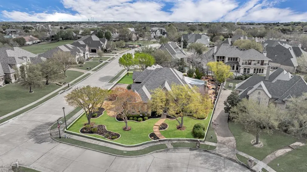 Nestled on a tranquil corner lot in the prestigious Buffalo Creek community, this recently renovated home seamlessly blends modern luxury with timeless charm while offering the perfect balance of elegance and functionality. Now featuring five spacious bedrooms and 4.5 bathrooms, this home is designed for both comfort and style. From the moment you walk inside, you are greeted by beautiful beams and sight lines that include the wine grotto and second fire place, and the outside oasis. Enjoy the chef’s kitchen that features a built-in refrigerator, custom island, and custom ceiling-height cabinetry for ample storage and a sleek, sophisticated look. The downstairs features two secondary bedrooms and the Primary suite. The primary suite is a true sanctuary, complete with a cozy sitting area, dual master closets, and a stunning see-through fireplace that warms both the oversized bedroom and spa-like bathroom—all overlooking the dreamy backyard. Upstairs, you'll find two bedrooms with their own private en suite, a large media room fully equipped with a bar and projection screen, and a game room with a full-size pool table. Step outside to your resort-style backyard, where a 9.5-ft lagoon pool with a custom grotto, fountains, and a tanning ledge creates your own personal paradise. The expansive patio features a Renato brick pizza oven, tv shelf, serving bar, and picturesque views of mature trees—ideal for outdoor gatherings. Recent updates include fresh interior and exterior paint, an office that has been transformed back into a bedroom, upgraded epoxy flooring in the fully functional 3-car garage, hand-scraped hardwood flooring on the first floor and stair landings, new carpet, and additional lighting added to the grotto area. This home is a one-of-a-kind retreat, offering luxury, comfort, and an entertainer’s dream—right in your own backyard!