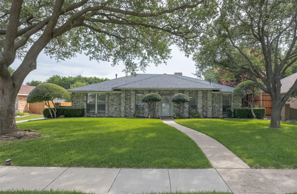 Charming One-Story Ranch with Pool Near Lake Ray Hubbard. Welcome to this spacious 3-bedroom, 2-bathroom one-story ranch-style home located just minutes away from Lake Ray Hubbard. Nestled on a quiet, tree-lined street in Garland, Texas, this home features a beautifully landscaped front yard with lush St. Augustine grass and a mature oak tree offering plenty of shade and curb appeal. Inside, you'll find an oversized primary suite with direct access to a sunroom—ideal for a home office, second living space, or a peaceful retreat. The kitchen is designed for convenience, featuring double ovens, a GE gas cooktop, and a nearby laundry room. The refrigerator is included, adding extra value. The family room offers a cozy gas fireplace and custom-built-ins, creating a warm, welcoming atmosphere for relaxing or entertaining. Additional highlights include plantation shutters throughout, linen closet, and extra covered parking - 2-car garage and a carport. Step into your private backyard oasis—complete with a sparkling in-ground pool, stone waterfall feature, and a 7-ft board-on-board privacy fence restained in 2022. Major system updates include New Roof (2022), Water Heater (2022) Rheem HVAC System (2019) Furnace (2019). As an added bonus, this home may qualify for a $15,000 down payment grant through a City of Garland homebuyer program (eligibility required and must use participating lender).