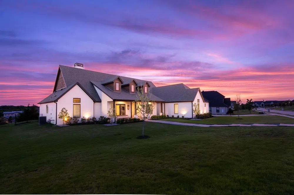 This Cliff Lewis custom home sits on top of a hill and has the most beautiful views of Texas sunsets. Four bedrooms all with en suite baths, bar area with beverage fridge, crank windows in office as well as the front bedroom, oversized 3 car garage, 2 patios, spray foam insulation and electric pellet fed smoker and or grill. Renderings for pool and cabana are available upon request.