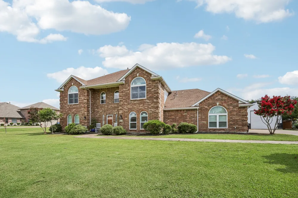 Experience country living with refined comfort and NO HOA! on this stunning 1-acre estate, nestled in a peaceful, tight-knit community just minutes from Rockwall’s vibrant downtown square. This beautifully updated home offers privacy, space, and a layout ideal for multigenerational living. Enjoy expansive outdoor amenities including a 20x25 steel shop-garage with 12x10 ft door (electric-ready), greenhouse on a permitted slab, raised garden beds, and a huge 61x20 patio—46 ft covered by a cedar structure with 3 ceiling fans, perfect for entertaining. The wrought iron fenced yard backs to serene pasture views, ideal for kids and pets. Step inside to find fresh interior paint, new ceramic wood-look tile, new carpet, all-new windows, and stylish plantation shutters throughout. The kitchen boasts granite countertops, painted cabinets, gas cooktop, and a brand new dishwasher. Formal dining space and an upstairs game room add functional versatility. The 5-bedroom layout features three oversized walk-in closets and French doors in the primary suite that open to the patio. A convenient half-bath downstairs offers outdoor access—perfect for future pool plans. The oversized 3-car garage provides abundant storage and parking. 1 car parking space inside the shop for additional car storage. Additional perks: new water heater (2025), and negotiable items including washer-dryer, fridge, sauna and zero-turn mower. Fruit trees—plum, pear, apple, fig, peach, and persimmon—line the property, enhancing the tranquil charm. No MUD, no PID. Enjoy community bunco nights and annual neighborhood gatherings in this rare gem of a home.