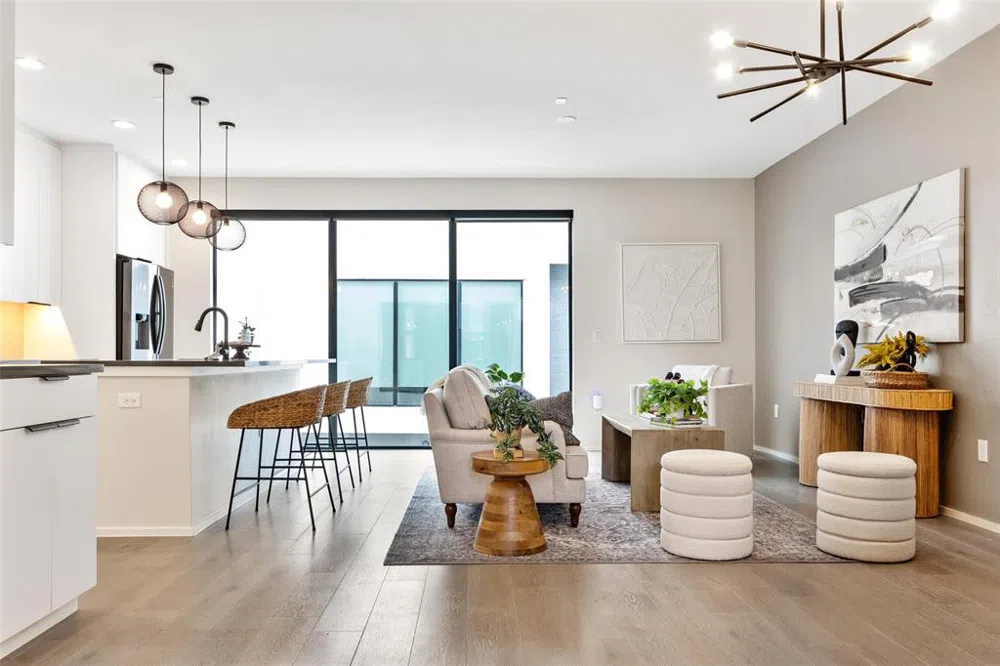 Experience luxury living in this stunning modern 2-bed, 3-bath condo with sleek design and high-end finishes. Built recently, this home boasts an open floor plan, seamlessly blending the living and kitchen areas. Floor-to-ceiling windows with remote-control shades that lets in an abundance of natural light, while two spacious balconies offer breathtaking views of the Dallas skyline. The kitchen is a chef’s dream, featuring a large quartzite island, high-end KitchenAid appliances, a walk-in pantry, a lavish backsplash, and elegant lighting. Two versatile flex spaces provide the perfect setup for a home office or gym. The primary suite is a sanctuary with a spa-like ensuite with large walk in shower, while the second bedroom is equally well-appointed. Outside, enjoy a generous gated yard—an urban oasis perfect for pets or entertaining. This exceptional home delivers style and convenience in one of Dallas’ most vibrant locations in East Village that is just 5 mins from downtown, Uptown and Knox-Henderson and Lower Greenville.