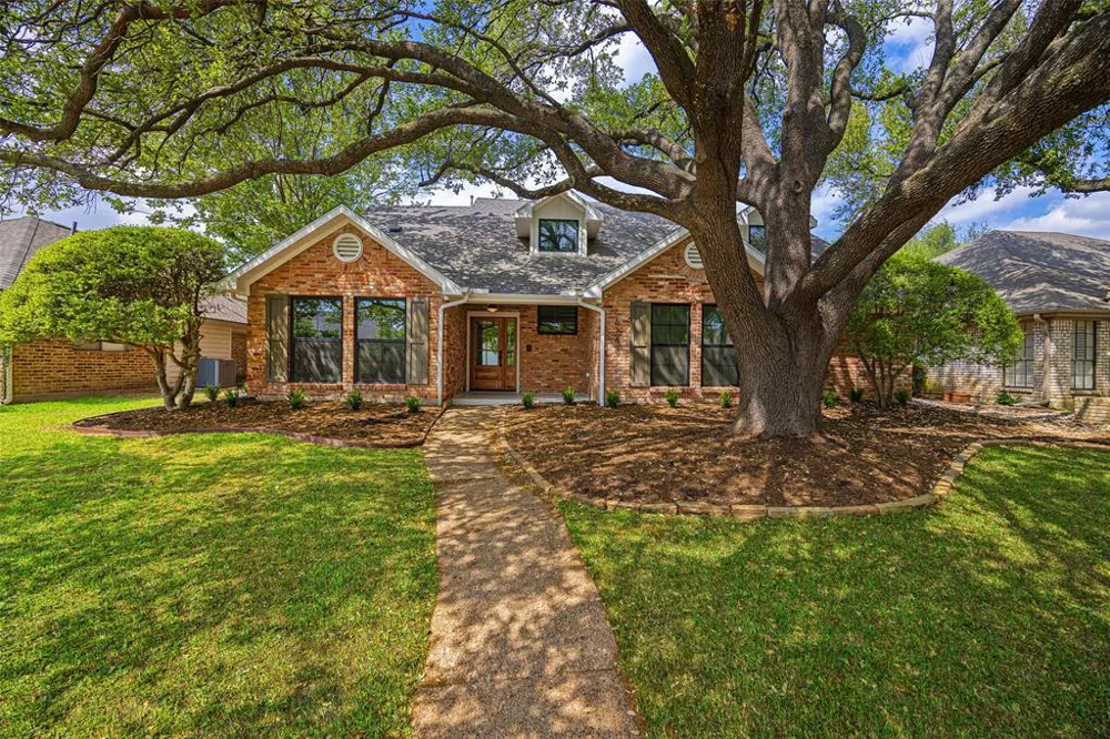 Nestled along White Rose Trail in coveted Prestonwood and zoned to exceptional Richardson ISD schools, welcome inside 2761 square feet of thoughtfully curated living space, framed by a majestic, show-stopping tree. Elaborately elevated by Maverick Design, 6143 blooms with intuitive ease at every turn. A gracious entry introduces the formal dining room—a moment of modern refinement framed by soaring ceilings and a statement chandelier. Just beyond, warm wood floors reveal the luminous living room, where a statement decorative light is rivaled only by a dramatic double-sided brick fireplace framing floor-to-ceiling charm (more on this later!). But the pièce de résistance is the chef’s kitchen, where beauty greets function. A grand island anchors refined cabinetry, sleek hardware, bold black countertops, and a gas range perfect for discerning culinary enthusiasts. Seamlessly connected, the kitchen flows into a darling dining nook-perfect for casual mornings or evening conversations-then gracefully transitions into the cozy family room for a cohesive living experience. When it’s time to unwind, the layout delivers with confidence. The primary suite offers private access to a covered patio tailor-made for morning coffee & evening aperitifs. Recall that striking double-sided fireplace? In this sanctuary, its twin stands as a quiet sentinel—brick by brick—framing a reading nook where time slows & stories come alive. Steps away, a spa-inspired ensuite hosts a frameless shower, double vanity, & luxurious garden tub. A nearby 2nd bedroom offers versatility as a nursery, office, or guest retreat. Meanwhile, 2 expansive bedrooms & a bonus closet upstairs provide privacy, flexibility, & space to grow. Outdoors, the backyard beckons w a covered porch & welcoming lawn designed for garden dreams & grand gatherings. Gracefully nestled near premier shopping, dining+acclaimed RISD schools, 6143 offers the perfect prescription for peaceful living. Welcome home. (NEW HVAC, NEW PLUMBING)