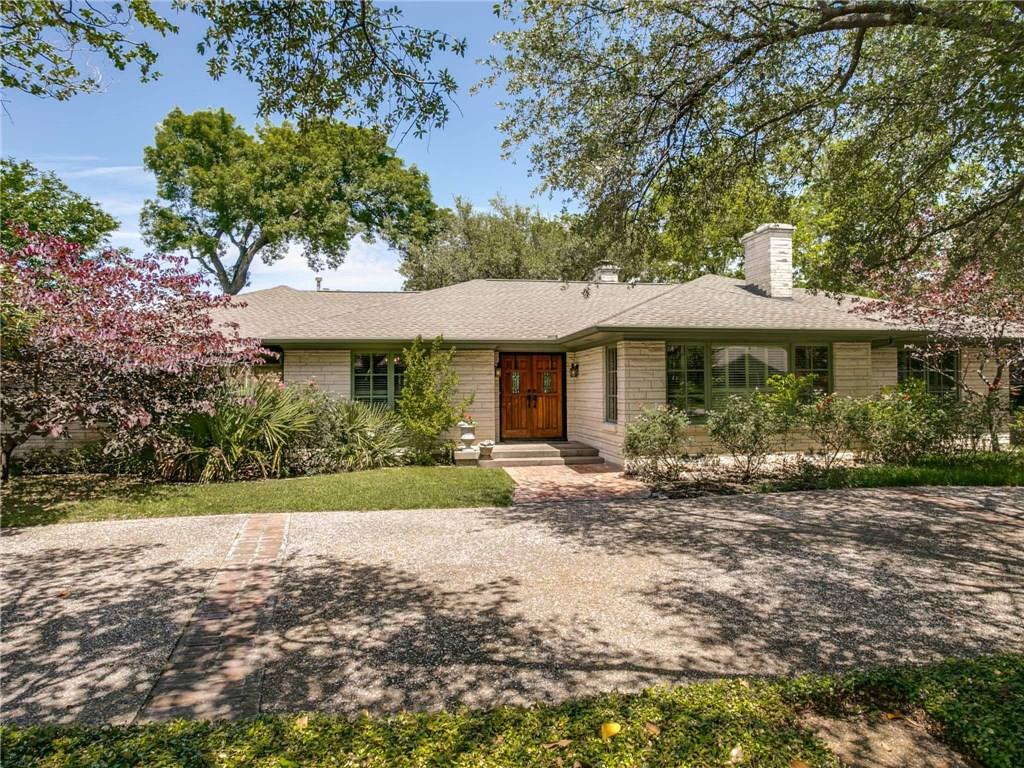 Nestled in the heart of Lakewood on 111 X 176 lot, this Austin Stone one level Ranch boost 4 br, 3 full bths, 4 living, 2 dining, 3 fireplaces. Spacious master with walk-in closet, tub, sep shower & dual sinks. Wood floors, recent windows, updated bths, and designer kitchen with dbl ovens, gas range and stainless appliances. This 1950’s home offers the architectural features, large rooms and character found only in an older home.