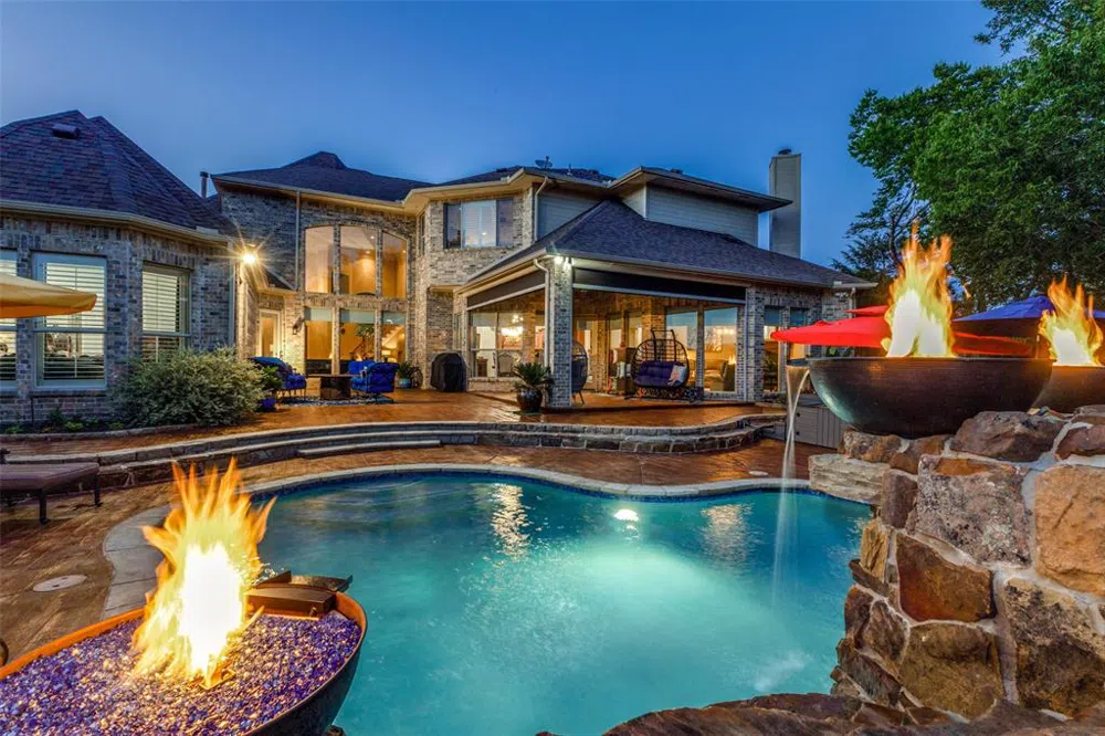 Enjoy the luxury of a backyard oasis on the golf course overlooking the 7th hole with a resort-like sparking pool, separate hot tub, and a massive stone waterfall complete with fire bowls. The pool was renovated in 2023 when all equipment was replaced. Included in the 2023 renovations were replacing two HVAC systems (lifetime warranty) and the third unit was replaced in 2019 by the previous owner. The 2022 renovations included replacing both water heaters so the bones of this home are solid! In addition to all this you will find plantation shutters, remote controlled shades both inside and on the patio, an updated sound system, smart home features, Mother in law downstairs bedroom, and state of the art media equipment that conveys with the property. Don't miss your opportunity to live in this meticulously maintained custom home on Buffalo Creek Country Club's golf course overlooking a pond!